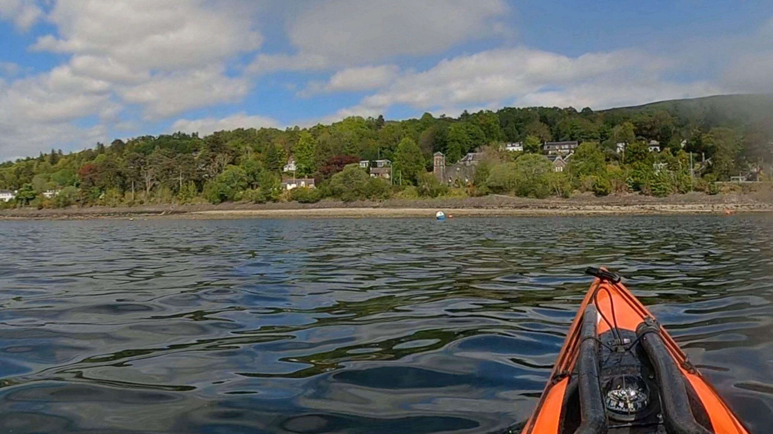 Viewing over, I headed back into Helensburgh, and parked up at the now shut, £22 million leisure centre. Famous now for its roof blowing off in Storm Eowyn. Conditions today though were lovely. I decided to paddle the Carrot across to the Rosneath peninsular without too much thought about where I'd head after that. On reaching the peninsular I turned right, for no particular reason other than I'd be paddling into the light wind and consequently would have the light wind and tide with me on my return. I headed up into Gare Loch following the coast. I think it wasn't until I had passed through Rhu Narrows, that I hatched a plan to go and view the house from the sea.