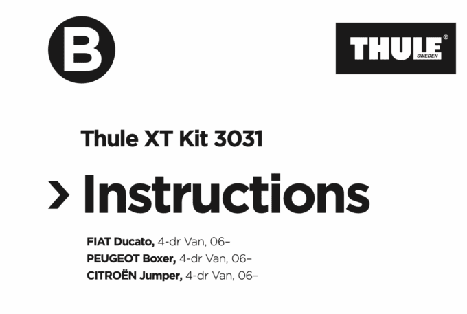 First of all I had better mention the I am using the rectangular Thule roof bars (called square by Thule) with the following fitting kits (751 and 3031) which I bought from www.roofracks.co.uk and are made especially for the Fiat Ducato van. These two kits allow you to connect the Thule roof bar feet to the vans existing roof mounting points. Take a look at the fitting instructions for both kits (click on the images below to open the PDF documents. You can then save/print via your browser buttons)