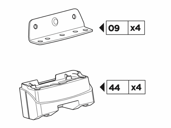 The blocks (part 44), just happen to be (within a few mm) the same hight as aluminium awning mounting points. Consequently, it was just a case of not using the foot (part 44 from Thule kit 3031) for the front mounting point 1, and mounting the "foot" of part 09 (from Kit 3031) directly onto the existing aluminium foot used for the awning. I did however need to re-drill, ever so slightly, part 09 (from Thule kit 3031) to match holes for the current awning bolt locations.